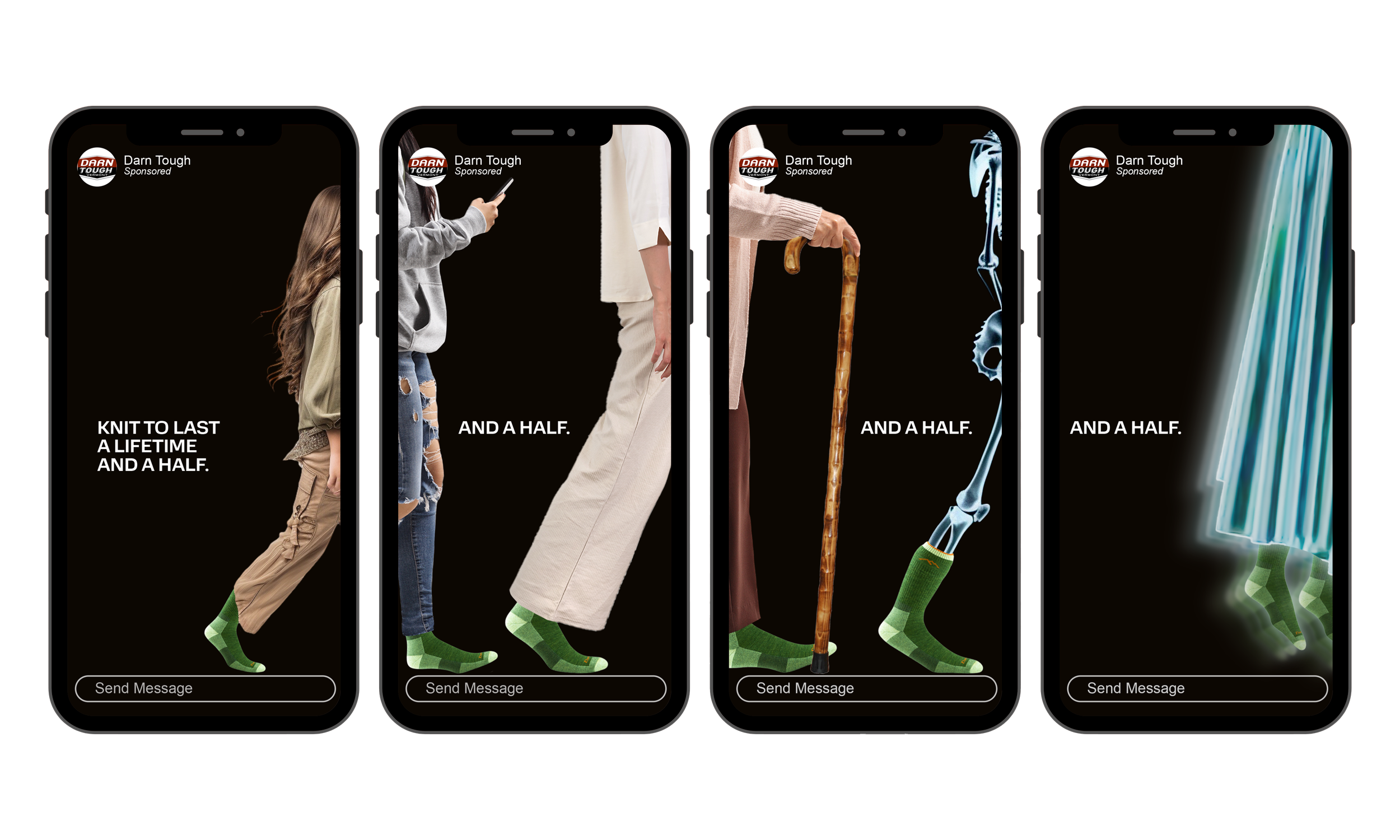 Most people click through Instagram stories fast, so having multiple stories back to back will give consumers an interesting look into the long-lasting durability of Darn Tough Socks.